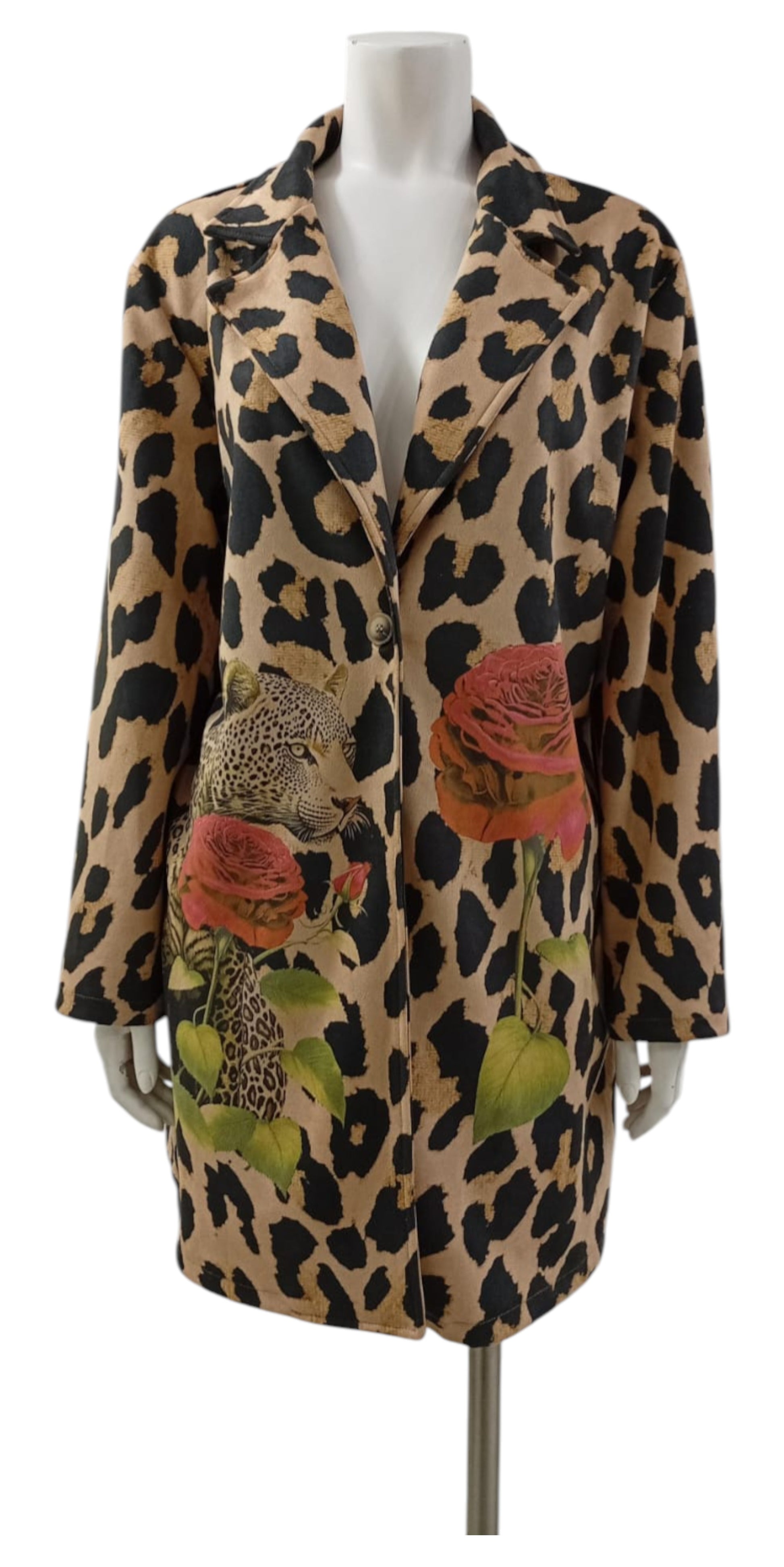 Chaqueta Italiana Animal Print – Leopardo y Flor Roja