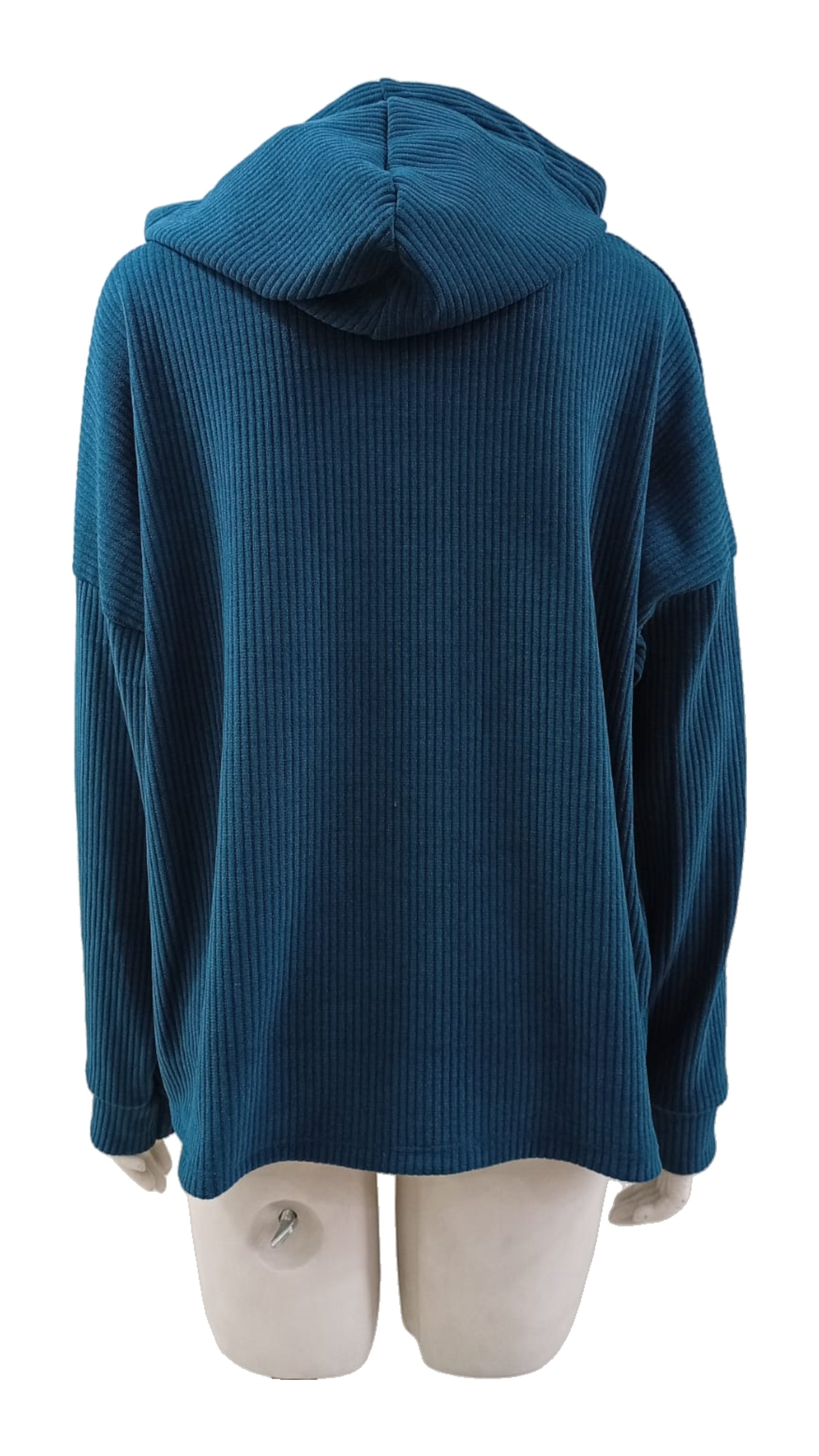 Polerón Italiano Verde Petróleo con Capucha y Detalles Animal Print