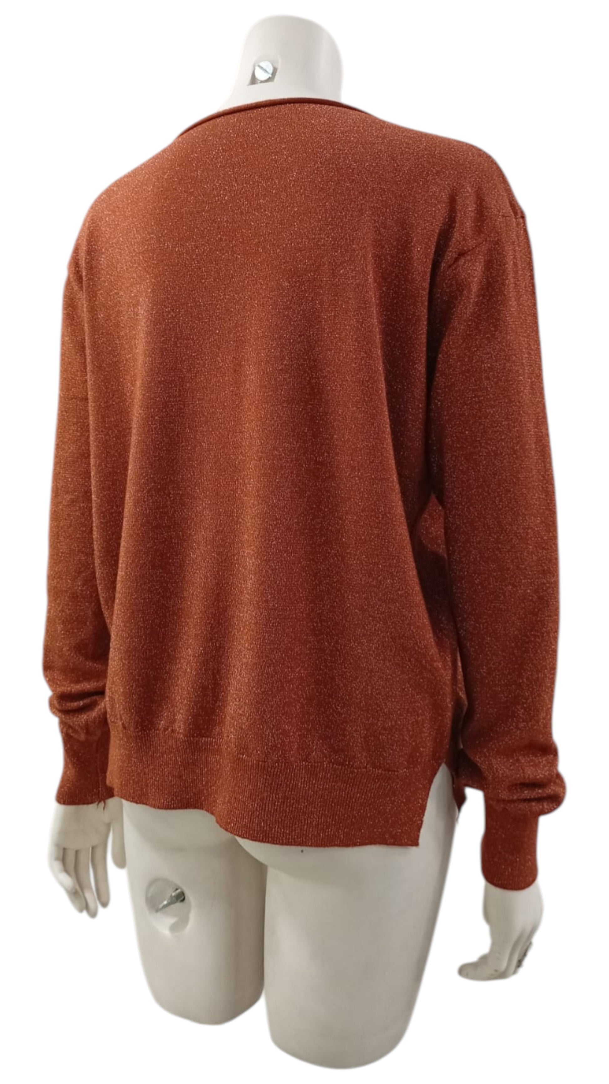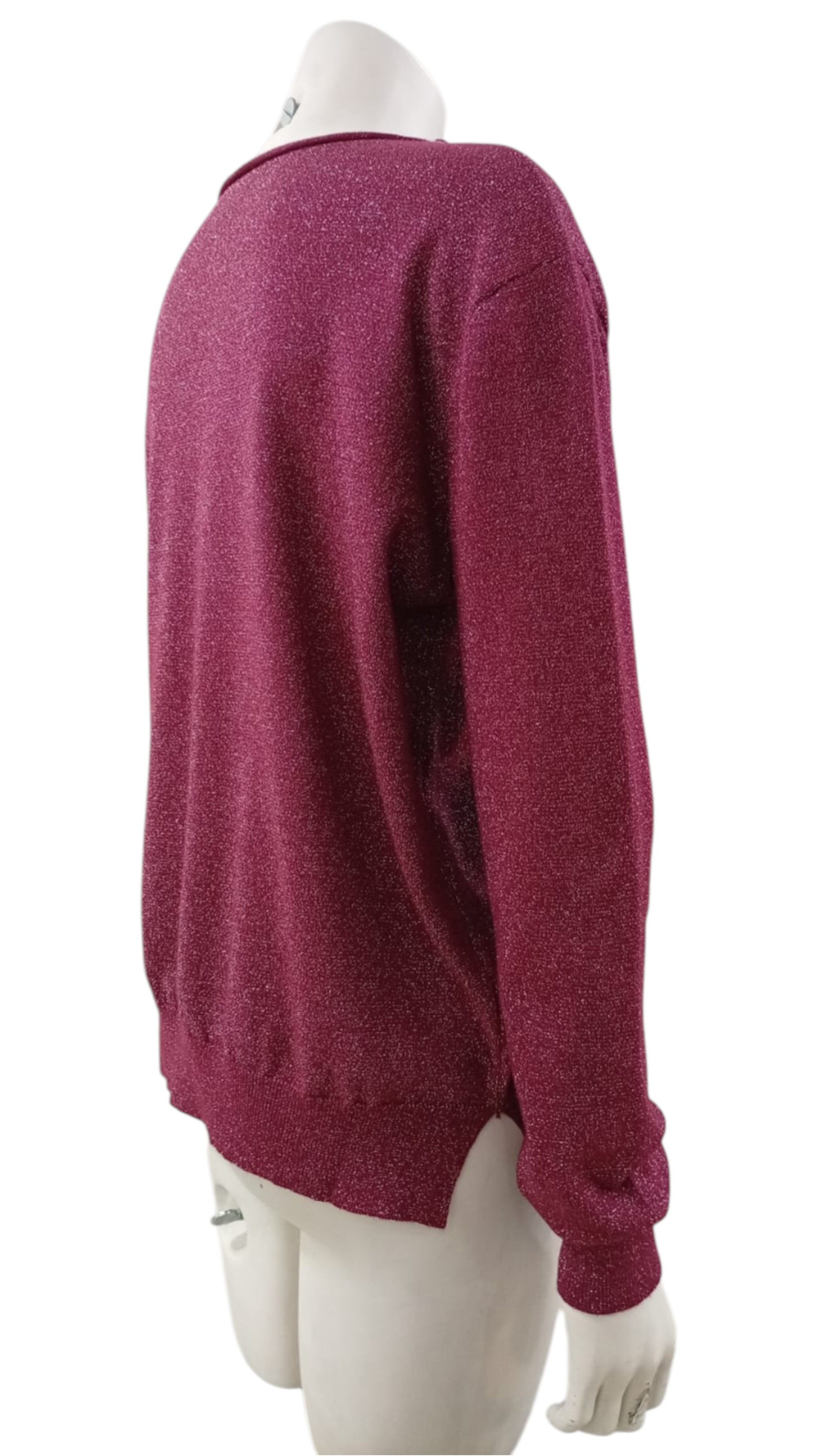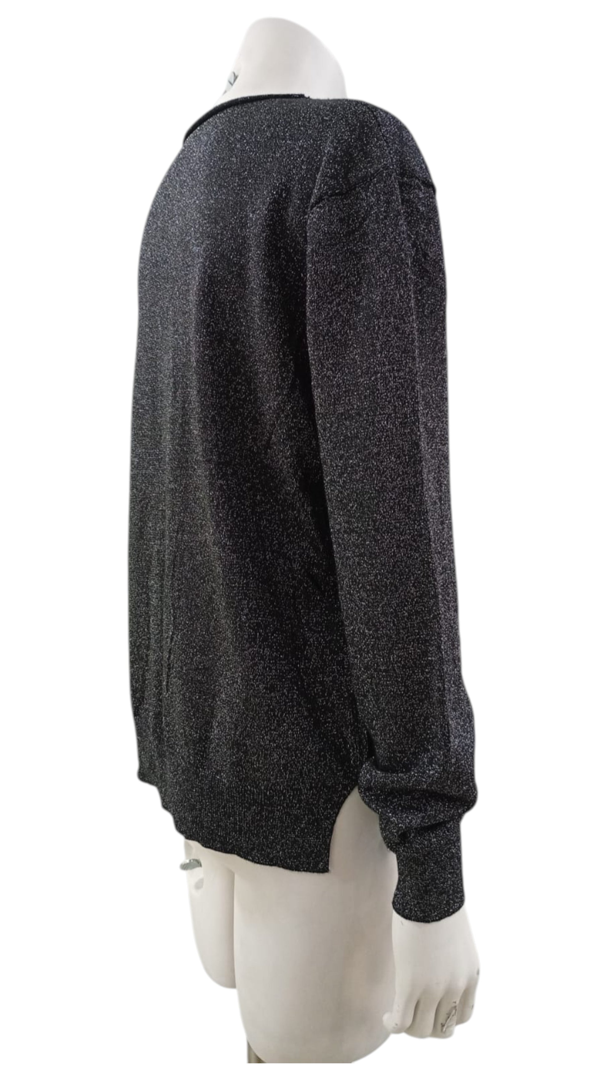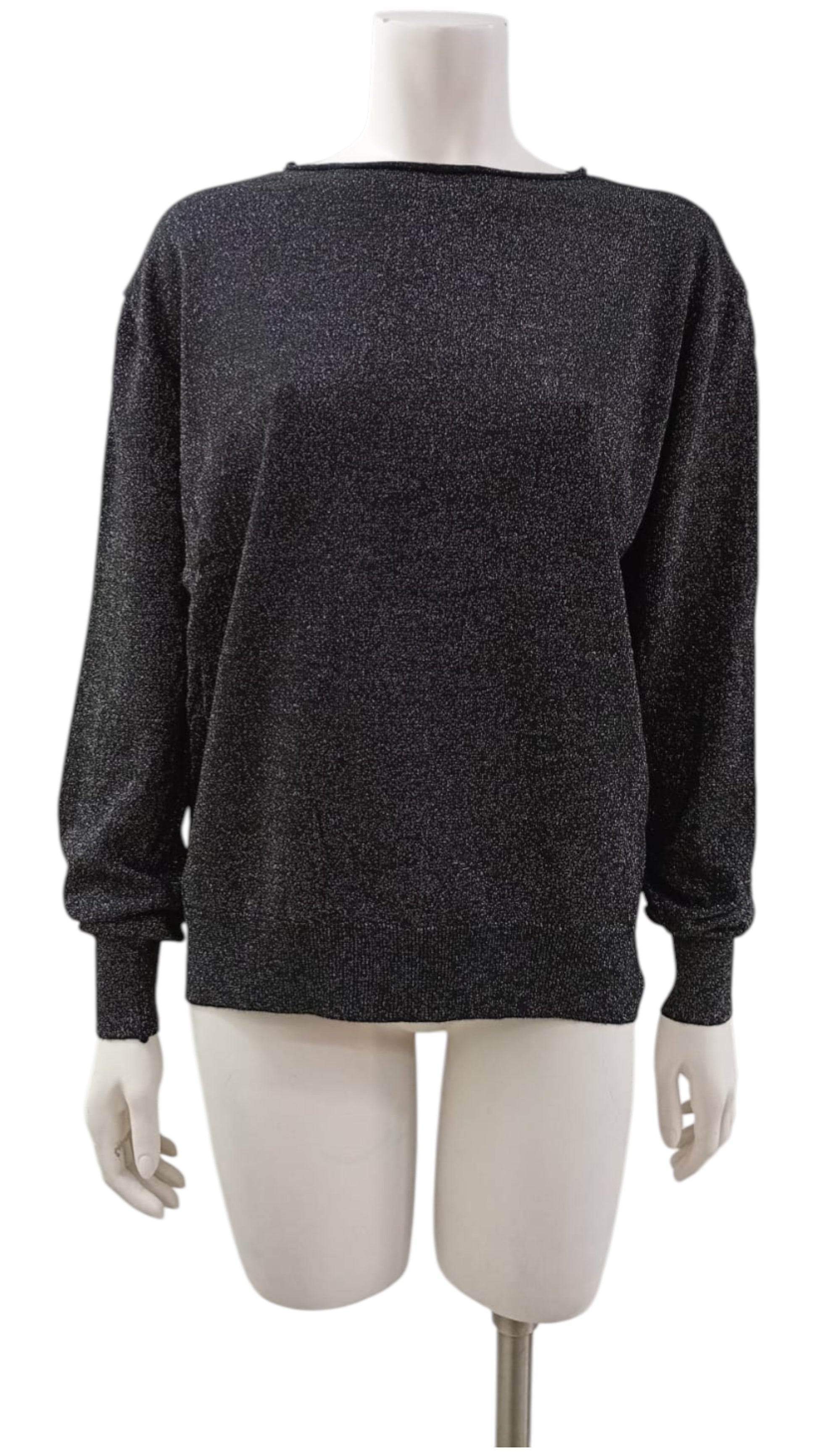 Este suéter destaca por su diseño con sutiles brillos que capturan la luz y añaden un toque especial a cualquier outfit. Su cuello ancho estilo rústico le da un aire relajado y acogedor, ideal para looks casuales con un toque diferente. Confeccionado en un tejido suave y cómodo, es perfecto para los días frescos en los que quieres sentirte abregada sin perder estilo.