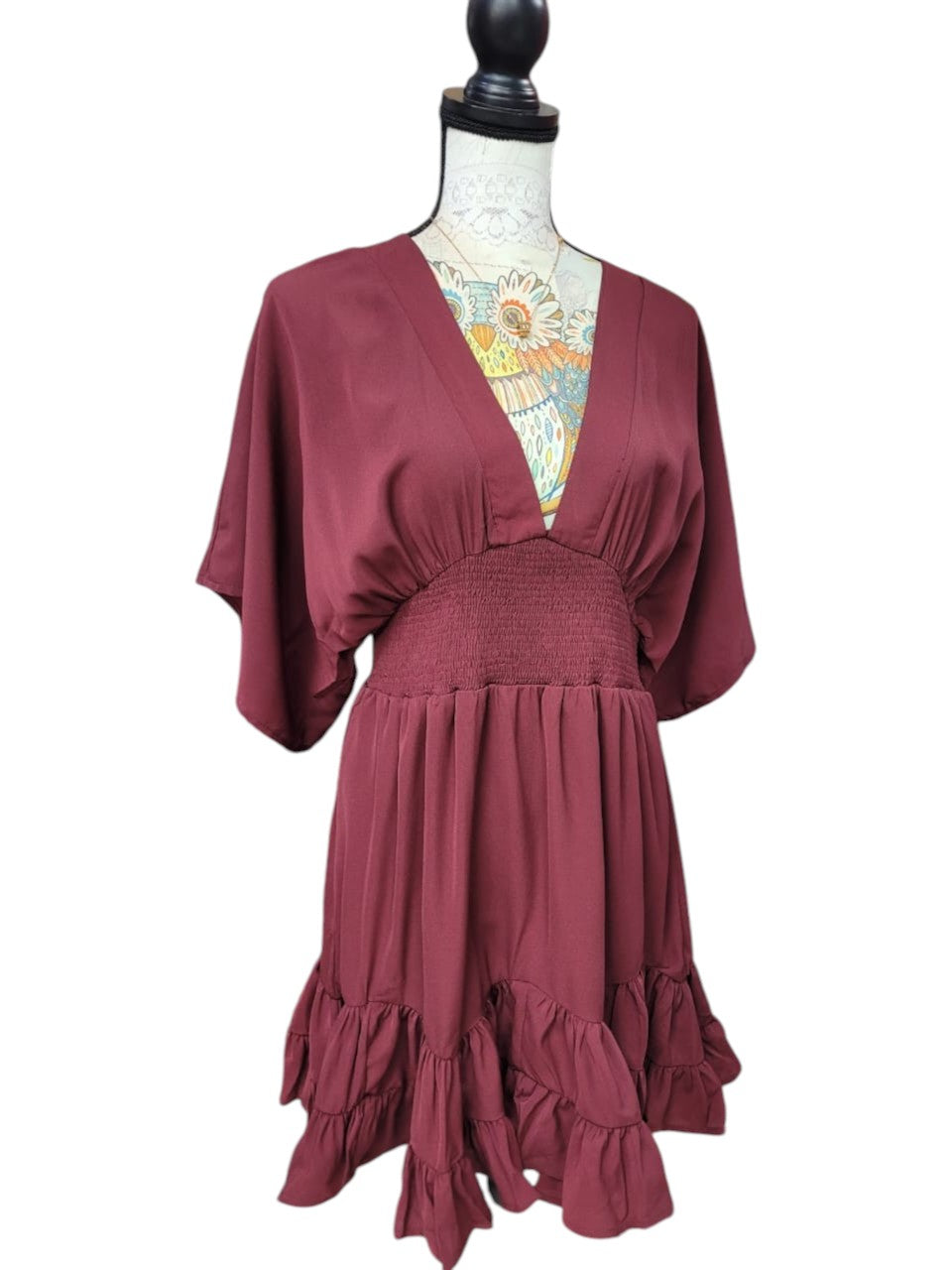 Este vestido en tono burdeo, cafe claro, verde y negro destaca por su sofisticación y estilo atemporal. Su diseño de mangas anchas añade un toque de movimiento y elegancia, mientras que el largo 3/4 equilibra perfectamente la silueta, creando una prenda versátil para distintas ocasiones. Ideal para lucir con confianza y personalidad, este vestido se convertirá en un imprescindible en tu armario.
